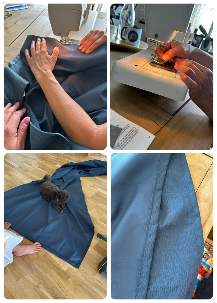 Merci à Aurore et à Blue d’avoir accepté de jouer les mannequins lors de ce cours ! 3 petites heures ont été nécessaires à Aurore pour apprendre comment fonctionnait sa machine à coudre, la prendre en main avec quelques exercices d’application, puis pour coudre elle-même les ourlets de ses rideaux ! Je suis très fière d’elle !